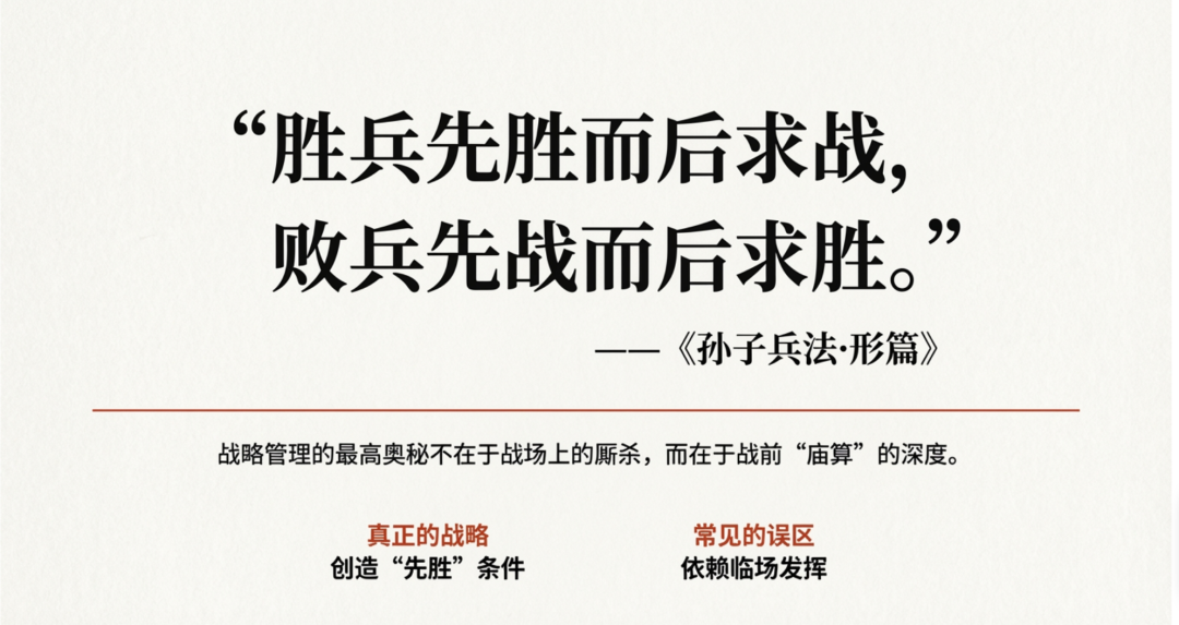 在战略的世界里,最精妙的胜利,往往在战斗开始之前就已决定。《孙子兵法·形篇》中那句穿越千年的箴言——“胜兵先胜而后求战,败兵先战而后求胜”——揭示了战略管理的最高奥秘:真正的较量,不在于战场上的厮杀,而在于战前“庙算”的深度与“先胜”条件的创造。