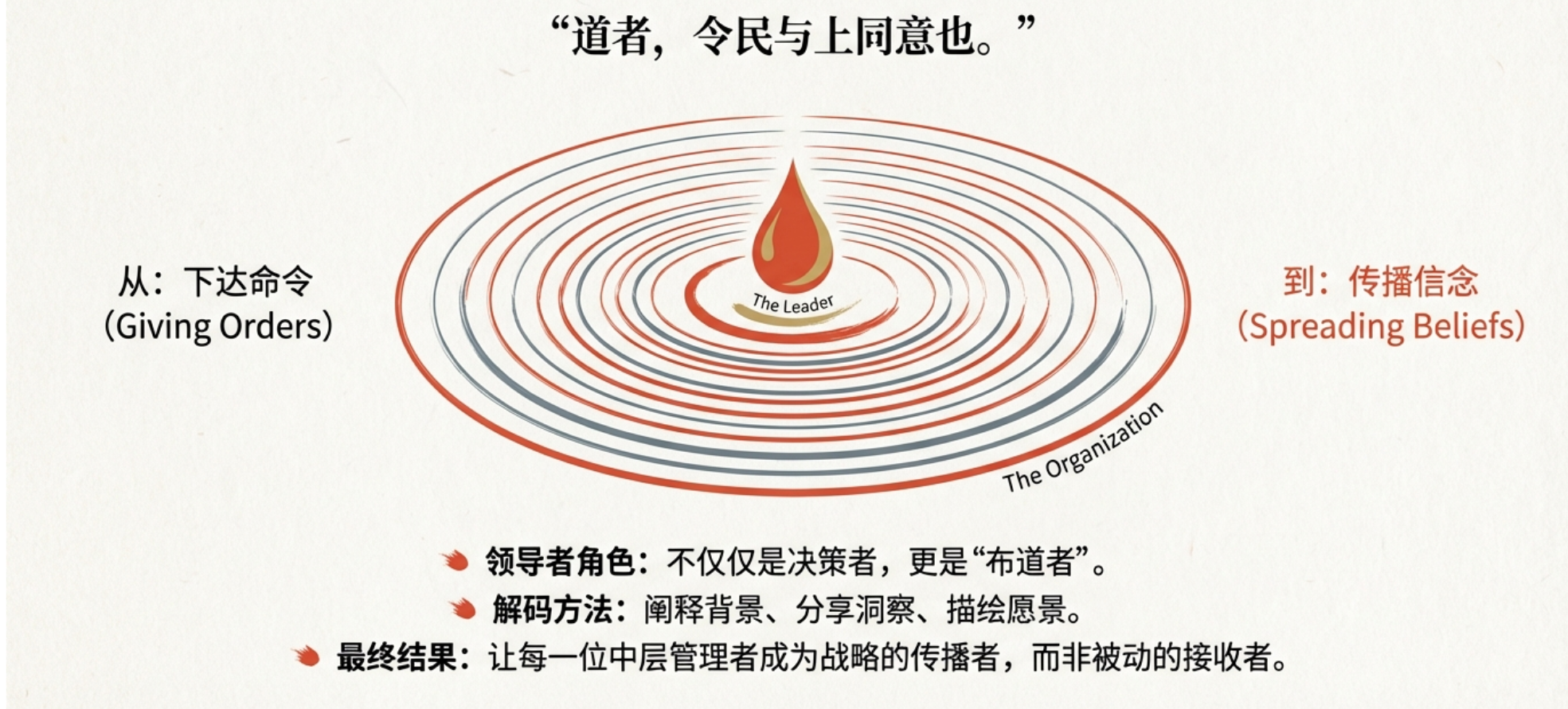 《孙子兵法》云:“道者,令民与上同意也。”战略解码的第一步,绝非下达命令,而是传播信念。领导者必须将战略意图背后的“为什么”清晰地传递给每一位执行者,让组织的整体目标与员工的个人追求相连接。