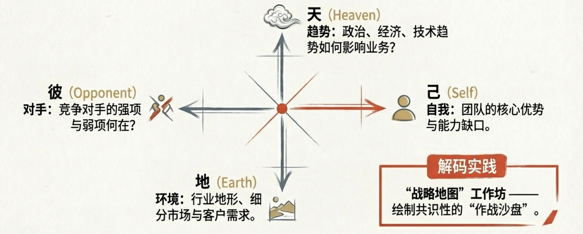 这个过程,完美呼应了孙子从“庙算”(高层决策)到“战道”(战场执行)的完整链条。一个有效的战略解码,必须完成以下“先胜四算”: